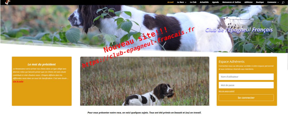 Le comité n'a pas manqué de travail en cette année 2025 : remises à jour administratives, préfecture, siret, journaux, résolution de problèmes internes aux banques dus aux changement, réfecion du livret d'accueil des nouveaux, réfection et réédition également du livre "vivre et chasser", mise en place de challenges pérennes retraçant notre mémoire, inclusion à la canine de vos résultats SMA au même titre que le Lémon, validation de notre grille de sélection à la canine, envoir d'une lettre aux juges de beauté pour que le standard de la race soit respecté avec exemple de points trop souvent oubliés, défense des concours de gibier tiré : correspondance écrite puis égaleemnt signature du manifeste, programmation de nos spéciales, tan et fields. Tout cela sans oublier nos missions quotidiennes : répondre à vos questions, demander les homologations, organiser la nationale d'élevage où cette année Franck Maréchal a réuni plus de 100 chiens et vous délivrer l'information dans une revue de qualité et si possible un site internet. Grâce à notre équipe informatique (Martine Gillet, Aude Courtet et Sébastien Vayssiere) et surtout au dévouement d'un adhérent Patrice Peyle et d'un informaticien du club du Setter Anglais Monsieur Brobans (mise en place et créateur de Tangor), nous sommes en mesure de vous transmettre un site fonctionnel pour le début de l'année 2026 après un an de travail. Voici l'adresse du nouveau site : https://club-epagneul-francais.fr/