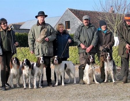 Une année de plus, nous voilà réunis pour faire courir nos chers épagneuls français, tenter d’obtenir un classement qui soit permettra l’homologation de titres de beauté, soit un titre de trialer, soit l’ouverture du championnat de travail sur naturel. Jean Pierre Jez et son épouse avec INZO II de l’Orée du Bois Jacob complètent le groupe.