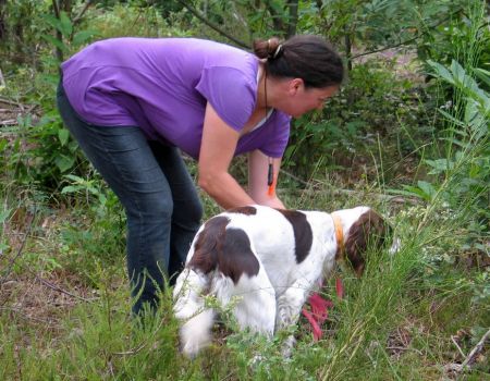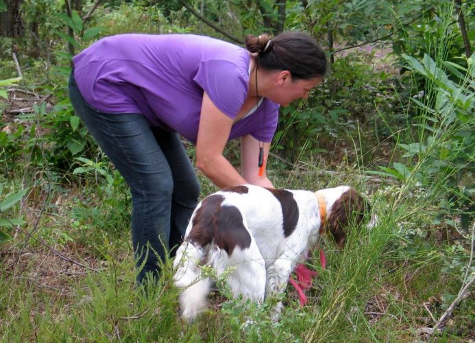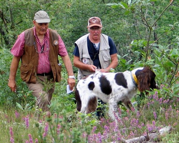 La moitié des chiens a été jugée par Colette Bissières, accompagnée de Chantal Cescon qui faisait un assessorat sur le TAN tout en étant notre confirmatrice, l’autre batterie a été jugée par notre Président, Alain Cammarata. Malheureusement, tous nos jeunes n’obtinrent pas leur diplôme. Mais, si c’est à la portée de tout chien d’arrêt, cela reste un examen. A ce jeu, Lou des Buis Noirs à Mr Chardeauneau et Lesly des Prés du Cougourlier à Alain Cammarata, malgré une quête qui méritait mieux, n’ont pas réussi à trouver leurs oiseaux et se sont tapés. Ensuite Madly de la Passion du Poète à Daniel Beaujean et son frère Modjo à Christophe Battut ont été un peu asphyxiés dans leur quête, et vu leur jeune âge et le fait qu’ils n’aient pas vu assez d’oiseau dans leur formation, n’ont pas pu négocier correctement leur perdreau … Madisson de la Forêt du Haut Dourdou à Mr Pradeilles a connu la même infortune, ainsi que Mauvis des Ondines de l’Escaut à la Diane du Sud Gironde, Peggy Ducos. En plus, comble de malchance pour la petite chienne, son passage se situait près de 11h30 à cause « de ses premières chaleurs » Tous ces chiens ont été mis en présence, parfois en laisse pour favoriser leur prochain examen … Aucun des recalés n’a démérité.