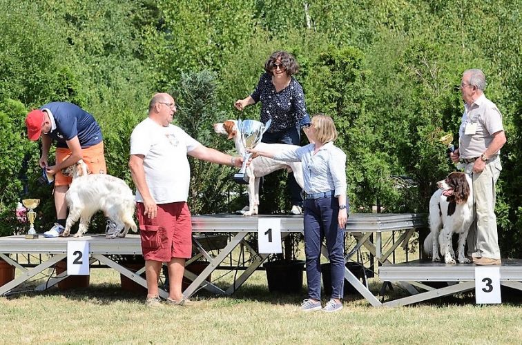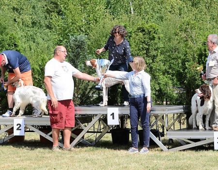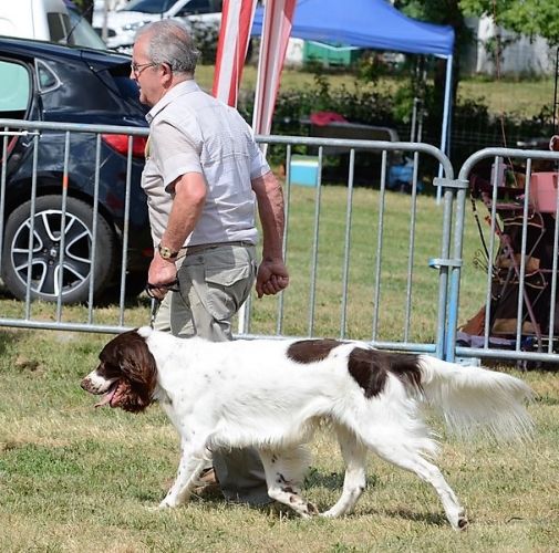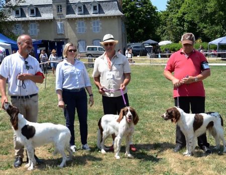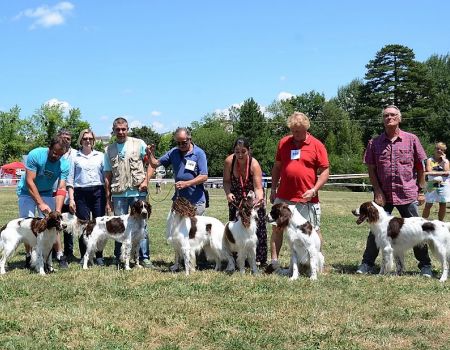 Tous ces beaux Epagneuls Français ont été jugés sous une chaleur écrasante par Laurence Guilbert avec beaucoup d'attention et de conseils appréciés par tous les concurrents, ce qui les encourage à revenir aux expositions.