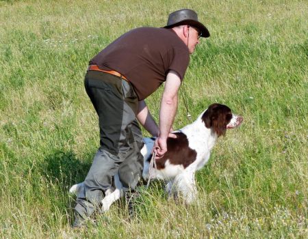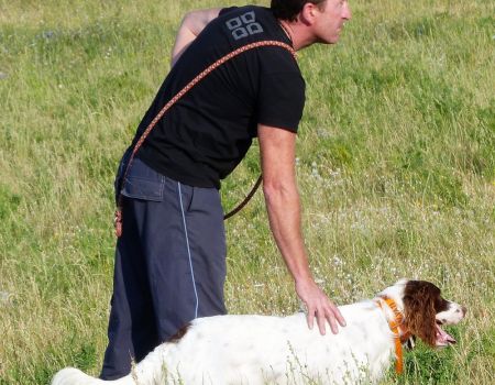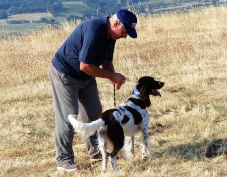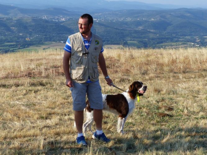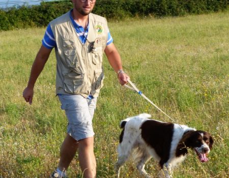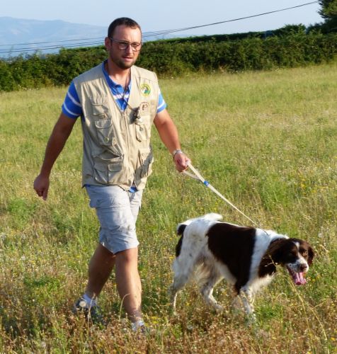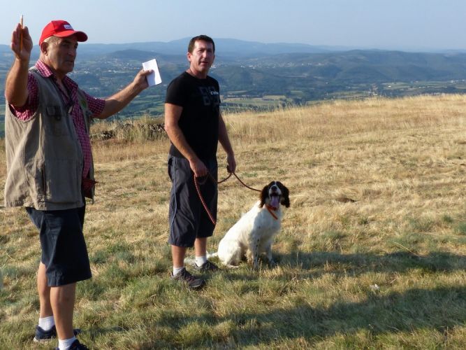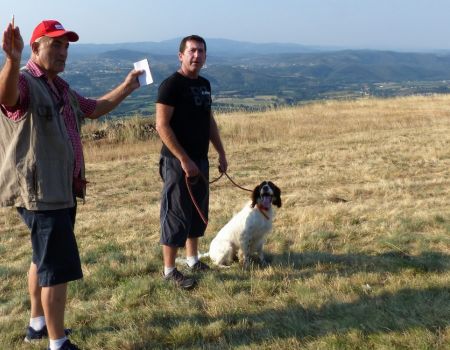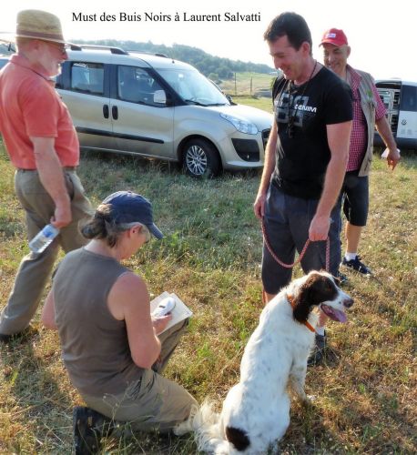 Au tour de Must des Buis Noirs à Laurent Salvatti.Chien bien aux ordres de son conducteur, départ assis à l’ordre. Chien très entreprenant, qui explore tout le terrain mis à sa disposition, sans oublier les bordures avec une quête croisée et une ouverture correcte. Doté d’un excellent port de tête, aux allures correctes, il indique l’oiseau et prend une pose d’arrêt à environ 20 mètres de l’oiseau. Attend son conducteur, coule à l’ordre, immobile à l’envol, puis part sous l’aile au coup de feu. Superbe prestation qui permet à Must des Buis Noirs de terminer 1er des mâles et de remporter le challenge de la Coupe de France des Jeunes.