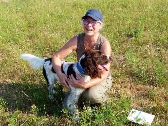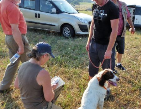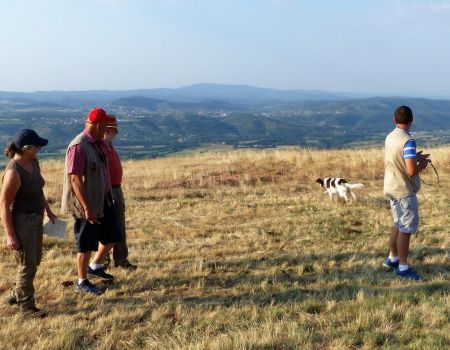 J’ai eu grand plaisir à examiner la Finale Nationale des TAN, appelée aussi Coupe de France des Jeunes, accompagné d’Hélène Laurent et de Bernard Garcia. Le terrain proposé, se situant sur le plateau de Mirabel, parfaitement adapté à ce genre d’épreuve, se composait principalement d’une grande prairie herbacée, bordée de haies. Nous avions 6 chiens qualifiés pour cette épreuve, trois mâles et trois femelles.