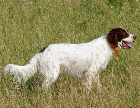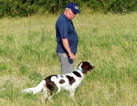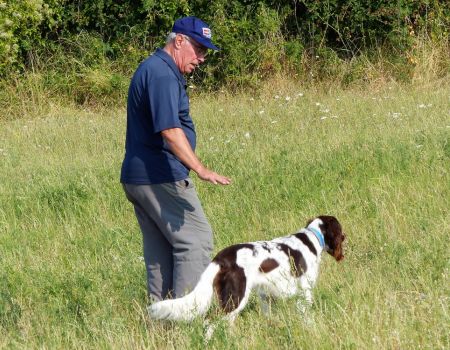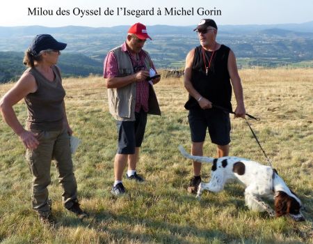 Vient le tour de Milou des Oyssel de l’Isegard à Michel Gorin. La aussi la quête est vive, ample mais desordonnée. Les allures et le port de tête sont excellents, malheureusement son parcours sera perturbé par des hirondelles qui volent à ras du champ et que le chien poursuit sans tenir compte du rappel de son conducteur. Il finit par indiquer et bloquer la perdrix, mais il fouaille sur son arrêt. Il termine à la troisième place.
