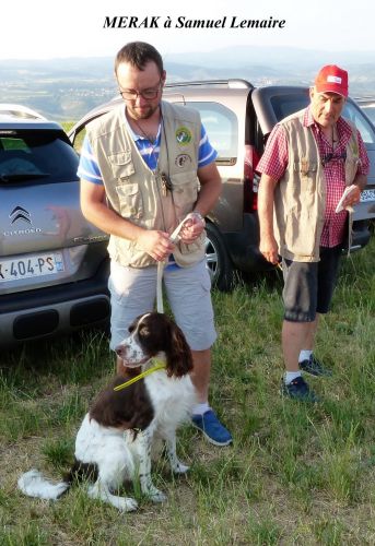 Le premier concurrent, Samuel Lemaire, nous a présenté Merak, chien entreprenant qui a utilisé tout le terrain mis à sa disposition, avec une belle quête croisée, ample sur les côtés, un port de tête un peu bas ainsi que de belles allures. Il indique l’oiseau, perd l’émanation et aura quelques difficultés à la reprendre. Arrêt ferme, l’oiseau piète devant le chien qui reste immobile, poursuit quelques mètres à l’envol. Très belle prestation qui lui permet de se classer 2ème.