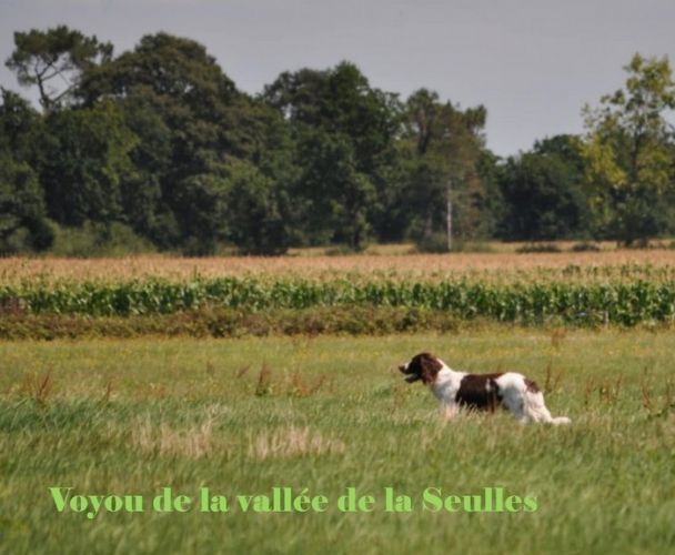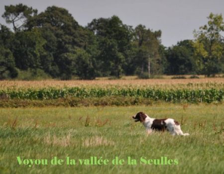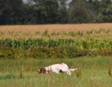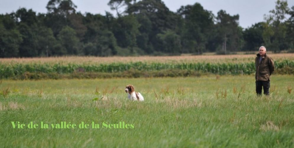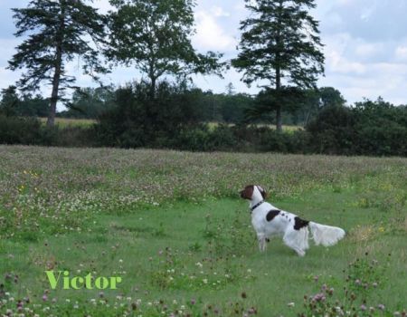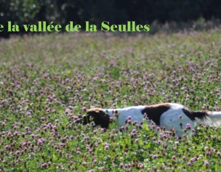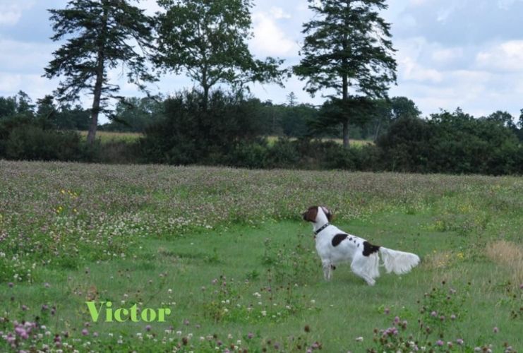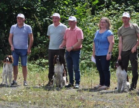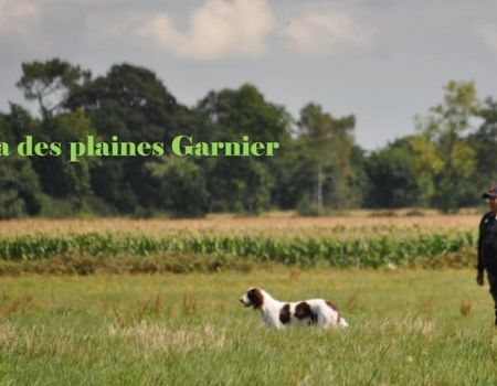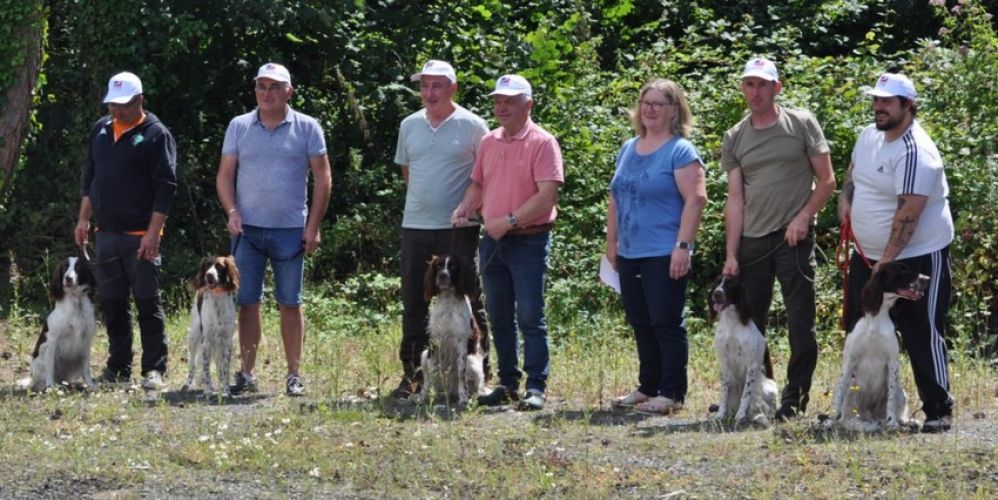 6 épagneuls français engagés ce qui nous a permis de proposer un entraînement sur perdrix rouge en matinée sur un territoire idéal, entouré de haies, loin des routes et parsemé de trèfle.