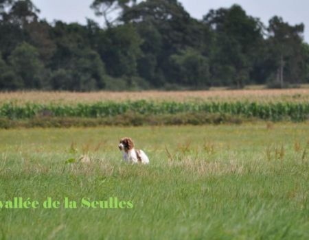 Certains épagneuls avaient déjà 1 saison de chasse et après quelques lacets, ils se sont vite mis dans la note. Pour d’autres, tout était nouveau mais l’instinct naturel a fait le reste… et vite, la quête s’est mise en place… et l’arrêt n’a pas mis longtemps à arriver.